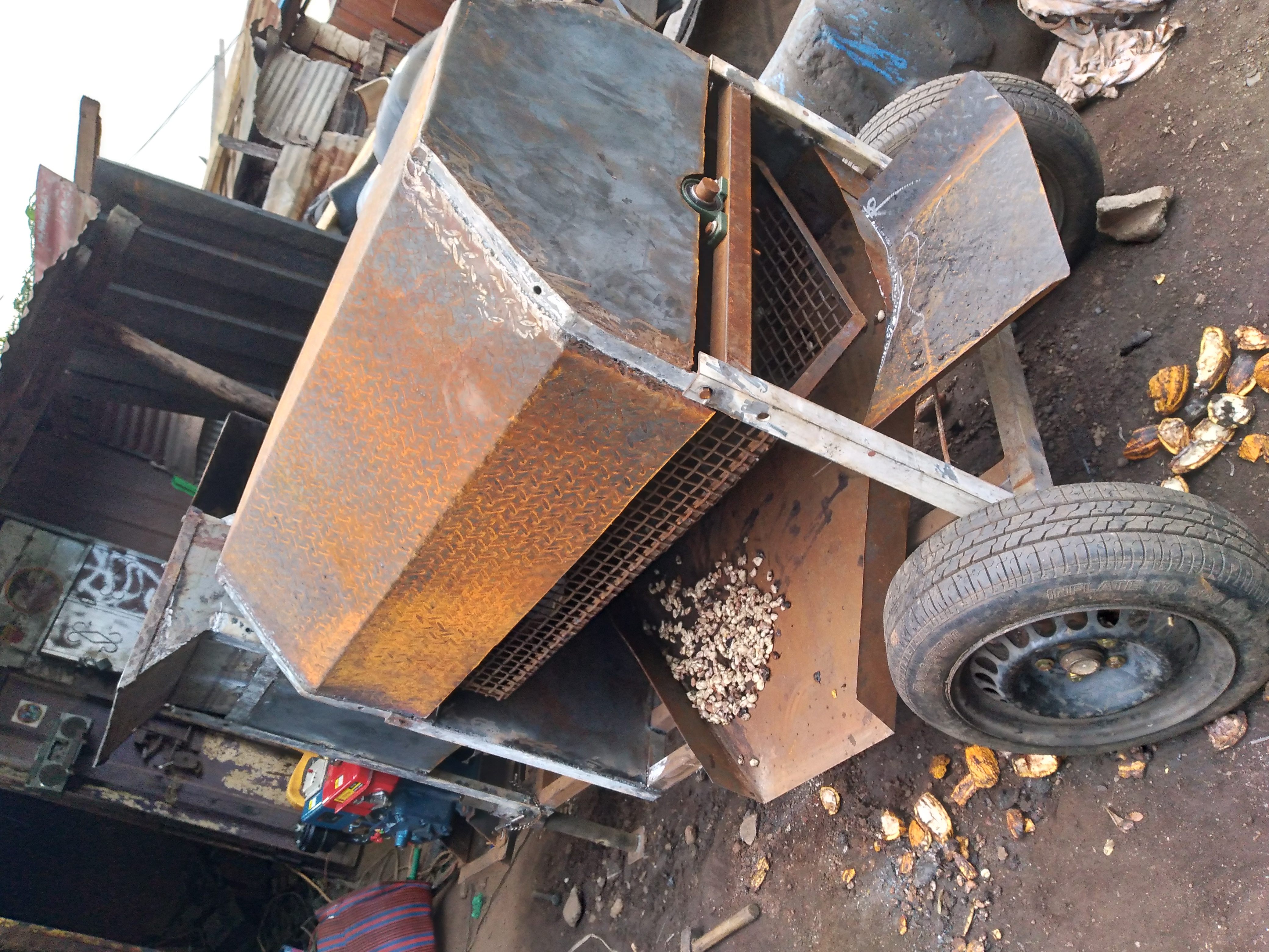 - • Working on our pilot project of cocoa pod breaking machine.